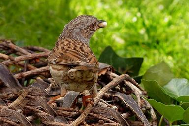 Keywords: animal bird dunnock prunella modularis foraging garden