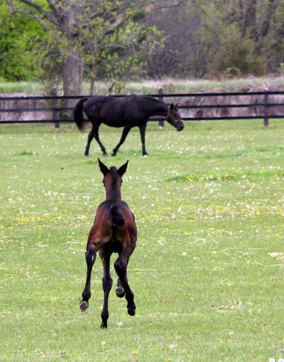 Keywords: animal horse foal equine horses trotter sports legs running equine sport racing standardbred outside mare and foal grass farm mare brown pasture field trees rural