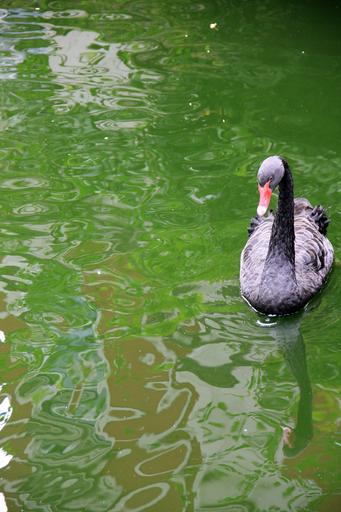 Keywords: animal swan black lake water watercolor green wave