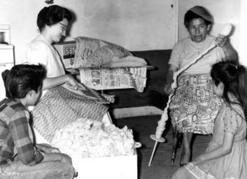 Keywords: voluntary service voluntaryservice mennonite board of missions mennoniteboardofmissions winslow arizona winslowarizona indian center indiancenter anita beidler anitabeidler wool polly curley pollycurley navajo people blackandwhite monochrome indoor black and white Caption: 1964. Anita Beidler, volunteer from Doylestown, PA, trys her hand at carding wool, the first step in making wool yarn. Polly Curley, Winslow, AZ, is doing the second step, spinning the carded wool into thick yarn on a Navajo spinning wheel. Citation: Mennonite Board of Missions. Photographs. Winslow, Arizona, Voluntary Service Units, 1900-1970. IV-10-7.2 Box 2 Folder 2, photo #12. Mennonite Church USA Archives - Goshen. Goshen, Indiana. Caption: 1964. Anita Beidler, volunteer from Doylestown, PA, trys her hand at carding wool, the first step in making wool yarn. Polly Curley, Winslow, AZ, is doing the second step, spinning the carded wool into thick yarn on a Navajo spinning wheel. Citation: Mennonite Board of Missions. Photographs. Winslow, Arizona, Voluntary Service Units, 1900-1970. IV-10-7.2 Box 2 Folder 2, photo #12. Mennonite Church USA Archives - Goshen. Goshen, Indiana. |