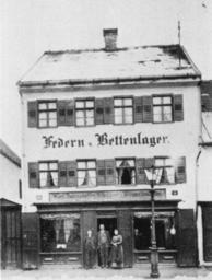 Keywords: Ankershofen & Saam, Fürstenfeldbruck, Betriebsgebäude von 1867.jpg Karl Ankershofen Kürschnerei Federn u Bettenlager Ankershofen Fürstenfeldbruck von 1867 Das Betriebsgebäude der späteren Firma Ankershofen Saam gegründet 1856 1856 erwarb der Kürschnermeister Johann Nepomuk von Ankershofen für 700 Gulden das unter dem Namen žKürschnerhaus bekannte Gebäude in der Schöngeisinger Straße 1885 ging das Geschäft an seinen Sohn Karl über 1917 übernahm dessen Sohn Johann Nepomuk die Firma 1921 wurde das Haus umfassend modernisiert 1927 starb Johann Nepomuk an den Folgen einer Kriegsverletzung Zwei Jahre später heiratete sein Witwe Alois Saam ab jetzt hieß die Firma Ankershifen Saam Saam war zu der Zeit mit 23 Jahren Deutschlands jüngster Kürschnermeister 1954 wurde das Gebäude erweitert in der Form wie es zum 125-jährigen Jubiläum im Jahr 1981 bestand Zu der Zeit beschäftigte der Betreib 19 Mitarbeiter Seniorchef war Alois Saam Inhaber Manfred Kriegel I v Nippold Pelz International Heft 8 August 1981 1867 author PD-old <gallery>Ankershofen Saam Fürstenfeldbruck Betriebsgebäude von 1856 jpg</gallery> Furriers in Fürstenfeldbruck Ankershofen Saam Schöngeisinger Straße Fürstenfeldbruck Feathers 1856 establishments in Germany