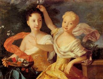 | Keywords: Anna Petrovna and Elizaveta Petrovna.jpg Painting Creator Louis Caravaque 1717 painting St Michael's Castle http //artclassic edu ru/catalog asp cat_ob_no 18027 resource_type 12243 artclassic edu ru other versions <gallery> Ка авакк - По т ет ца евен Анны Пет овны и Елизаветы Пет овны jpg </gallery> PD-old-100 DEFAULTSORT 1717; Petrovna Louis Caravaque Portrait paintings in the St Michael's Castle 18th-century portraits in the Russian Museum Romanovs Anna Petrovna of Russia Portraits of Elizabeth of Russia as a child 1710s paintings in Russia 1717 portrait paintings 18th-century family portraits of royalty 18th-century portrait paintings in Russia 18th-century portrait paintings of girls at half length Portrait paintings of girls from Russia Family portraits of Russian rulers Portrait paintings of females with flowers Portrait paintings of sisters Portraits with 2 persons |