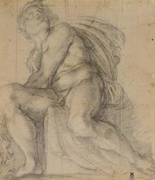 Keywords: Annibale Carracci - Study for an ignudo - Google Art Project.jpg black chalk heightened with white squared up for enlargement in black chalk on faded blue paper; laid down Collection of Sir Thomas Lawrence 1769 “1830 Lugt 2445 2446 ; his collection sold by Samuel Woodburn 1786 “1853 London to Lord Francis Egerton 1800 “57 1st Earl of Ellesmere Lugt 2710B ; by descent to John Egerton 1915 “2000 5th Earl of Ellesmere and 6th Duke of Sutherland; Ellesmere sale Sotheby's London 11 July 1972 no 66; from where purchased for the NGV 1972 special url_id pwHK8GoG7DRdQA PD-old-100-1923 1609 Drawings by Annibale Carracci Google Art Project works by Annibale Carracci National Gallery of Victoria - Western painting Drawings of nude sitting males |
