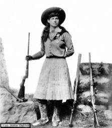 Keywords: Annie Oakley by NH Rose c1890s.jpg Studio portrait of Annie Oakley She holds a rifle and poses near two others http //digital denverlibrary org/cdm/singleitem/collection/p15330coll22/id/26214/rec/6 Denver Public Library s 1890 Noah Hamilton Rose PD-old Annie Oakley |