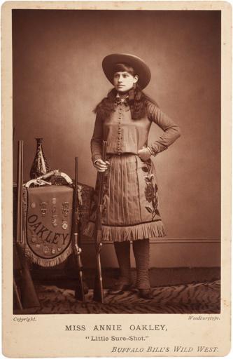 Keywords: Annie-Oakley-woodburytype-cabinet-card-c1890s.png w Woodburytype Cabinet card of Annie Oakley http //cowanauctions com/auctions/item aspx id 152994 Cowan's Auctions circa 1890 s Creator Elliott Fry PD-old http //digital denverlibrary org/cdm/singleitem/collection/p15330coll22/id/17420/rec/16 Denver Public Library Annie Oakley Woodburytype Cabinet cards Females with firearms Elliott Fry |
