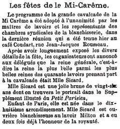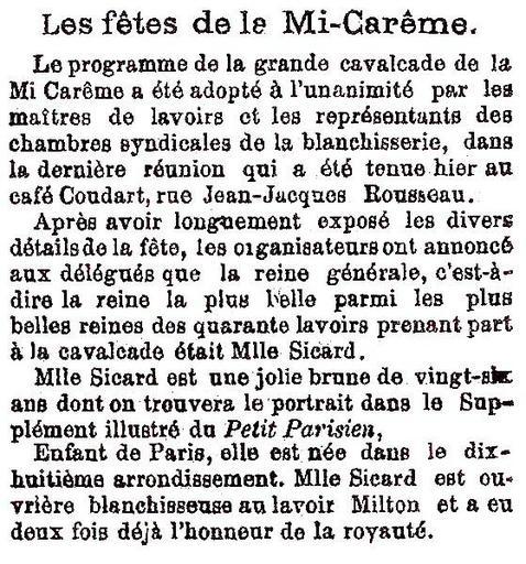 Keywords: Annonce Sicard 3.jpg fr Annonce de l'élection de la Reine des blanchisseuses 1891 à Paris pour la Mi-Carême Le Constitutionnel Creator Unknown 1891-03-05 Domaine public Une moins bonne avec des taches Le Constitutionnel Mi-Carême au Carnaval de Paris Mi-Carême au Carnaval de Paris 1891 Reines du Carnaval de Paris PD-old |
