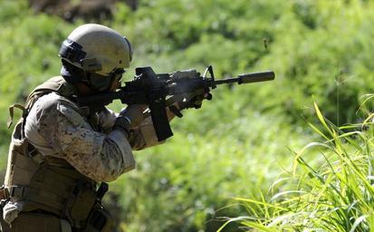 | Keywords: Annual training 140815-N-AX577-105.jpg en Marine Sgt J Sevilla of San Bernardino Calif an assistant team leader with 4th Force Reconnaissance Company 2nd platoon fires an M-4 carbine during a reactive shooting drill at the Kaneohe Bay Range Training Facility Aug 15 2014 The drill was part of a two-week annual training period when more than 130 4th Force Reconnaissance Company Marines conducted exercises including live fire and demolition small boat operations and scout swimming and infiltration and ambush The annual training period culminated in two days of full mission profiles that combined all the training elements into day and night operations for each platoon U S Navy photo by Chief Mass Communication Specialist Patrick Dille Navy Reserve Navy Public Affairs Support Element-West/RELEASED 2014-08-15 Chief Petty Officer Patrick Dille https //www dvidshub net/image/1518921 140815-N-AX577-105 2014-08-22 21 38 MARINE CORPS BASE HAWAII HI US PD-USGov-Military-Navy Marine Corps Base Hawaii Images from DoD uploaded by Fæ Photographs by Patrick Dille |