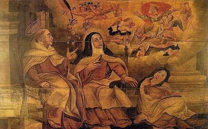 Keywords: Anônimo - Visão da Santíssima Trindade.JPG Visão da Santíssima Trindade Vision of the Holy Trinity century 17 technique oil panel cm 151 230 Museu de Arte Sacra da Universidade Federal da Bahia Salvador Brazil A obra é proveniente da antiga Sé da Bahia Representa Santa Teresa e São João da Cruz no locutório do Mosteiro da Encarnação em Ávila conversando sobre o mistério da Santíssima Trindade quando subitamente caem em êxtase com a visão Ao lado de Santa Teresa está possivelmente Beatriz de Ahumada Scan from MAIA Pedro Moacir Museu de Arte Sacra/UFBA São Paulo Banco Safra 1987 PD-old-100 Other versions 17th-century paintings from Brazil Baroque paintings from Brazil Holy Trinity Paintings of Teresa of Ávila Juan de la Cruz Museu de Arte Sacra da Bahia |