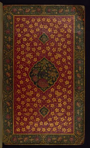 | Keywords: Anonymous - Binding from Five Poems (Quintet) - Walters W611binding - Top Interior.jpg This non-original binding from Walters manuscript W 611 probably dates to the early 13th century AH/AD 19th The binding is composed of lacquer with floral design in the main and outer panels as well as central oval medallions and pendants The binding has no flap early 13th century AH/AD 19th century lacquer Folio cm 29 5 17 accession number W 611 binding 83407 Ibrahim date and mode of acquisition unknown partly visible seal impression dated 1230 AH on fol 1a Henry Walters Baltimore date and mode of acquisition unknown Walters Art Museum Henry Walters Acquired by Henry Walters place of origin Iran Walters Art Museum license 2D Islamic bookbindings in the Walters Art Museum Khamsa of Nizami Safavid Walters MS 611 Anonymous work Media contributed by the Walters Art Museum needs category review |
