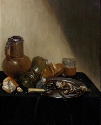 Keywords: Anonymous painter from the northern Netherlands - A still life of a pewter-mounted stoneware jug, an overturned roemer.jpg Artwork Anonymous painter from the northern Netherlands en A still life of a pewter-mounted stoneware jug an overturned roemer a broken roll of bread a candle in a brass stand a glass beaker of beer a pewter dish with fish and a knife with ivory handle on a draped table-top Oil panel cm 62 6 50 6 At Bonhams 3 December 2014 London lot 48 as Willem Gabron https //rkd nl/explore/images/117265 Now attributed to anonymous painter from the northern Netherlands 1634-1678 https //www bonhams com/auctions/21333/lot/48/ Other versions PD-old-100 DEFAULTSORT 16 Unknown painters Rummers in paintings Still-life paintings of glassware Still-life paintings with oysters Still-life paintings of tableware Salt in art Still-life paintings of seafood Salt containers tableware |