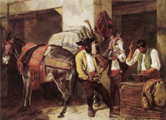 | Keywords: Ansdell Richard The Blacksmiths Shop.jpg Artwork creator Richard Ansdell circa 1858 Oil on canvas cm 102 9 139 7 Private collection object history exhibition history credit line accession number http //www artrenewal org/ Source PD-old-100 DEFAULTSORT Andsdell Blacksmiths Shop 19th-century paintings in unidentified private collections Paintings of Farriers Mules in art Paintings of men at work 19th-century genre paintings Richard Ansdell Spain in the 19th century Spain in art People of Spain in art Pictures from the Art Renewal Center |