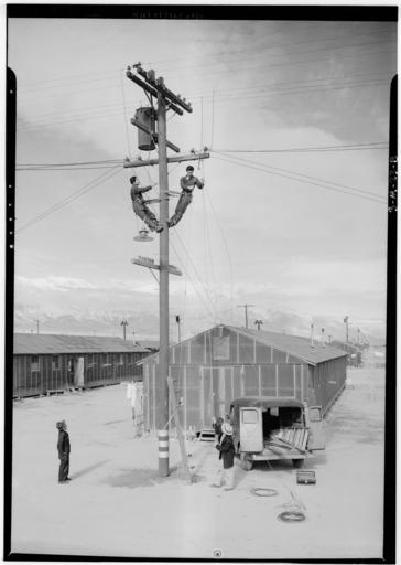 | Keywords: Ansel Adams Manzanar - Line crew at work in Manzanar - LOC ppprs-00222.jpg en Original caption Line crew at work in Manzanar 1943 LangSwitch From the http //www loc gov/pictures/collection/manz/ Ansel Adams's Photographs of Japanese-American Internment at Manzanar collection at the http //loc gov Library of Congress ppprs 00222 Creator Ansel Adams This collection is in the public domain but privacy and publicity rights may apply When images are reproduced in a publication the Library requests that the reproduction number be published with the credit as in the following example Library of Congress Prints and Photographs Division LC-A35-4-M-10 http //www loc gov/rr/print/coll/109_anse html Ansel Adams Photographs by Ansel Adams of Manzanar War Relocation Center |
