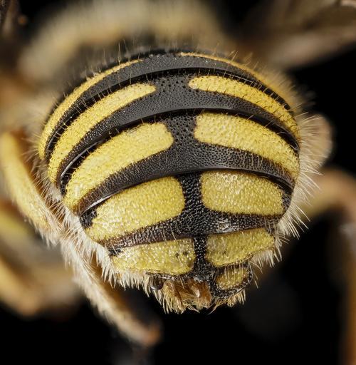 View Original:Anthidium_oblongatum,_Gynandromorph,_Tip_of_Abdomen,_top,_PA,_Adams_County_2014-11-24-16.38.57_ZS_PMax.jpg (2376x2432)