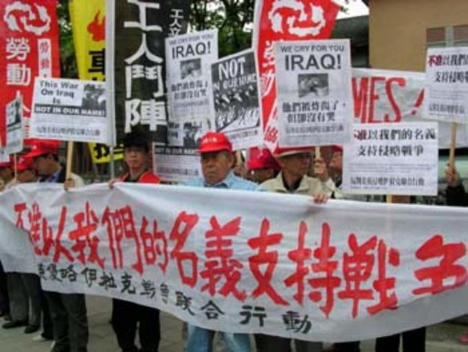 Keywords: Anti-War-Taipei.jpg An anti-War demonstration in Taipei Own 2003 Wen-Wei Li Xiachao association Protest marches in Taiwan Opposition to the Iraq War