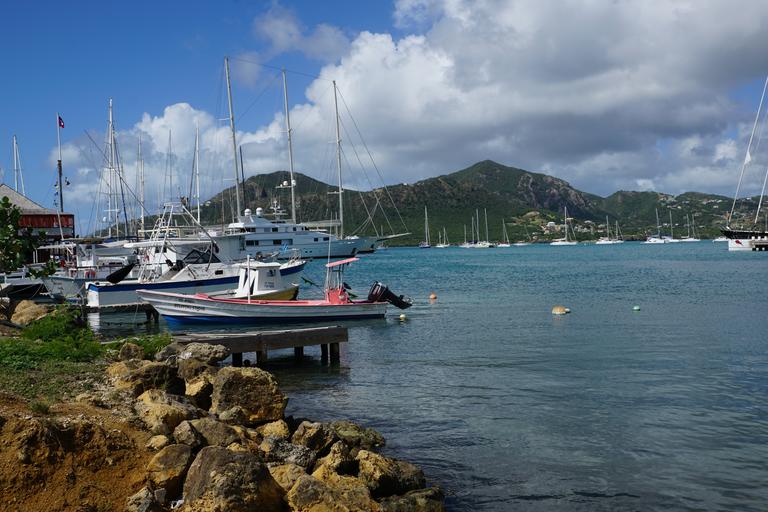 Keywords: antigua caribbean port boot sea water blue clouds holiday stones mountains