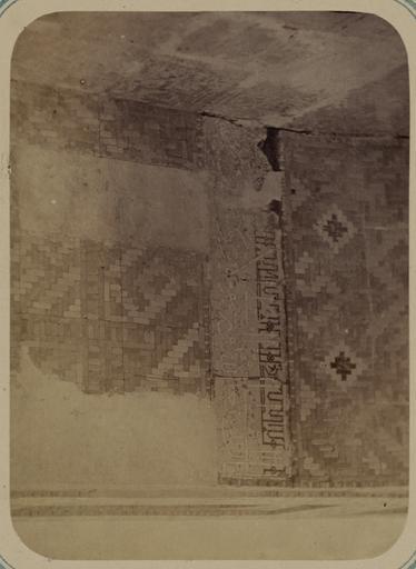 Keywords: Antiquities of Samarkand. Madrasah of Nadir Divan-Begi. Inscriptions Around the Inner Main Niche in Front of the Door from Outside WDL3778.png Artwork ru Богаевский иколай Владими ович 1843 1912 гг fr Bogaevskii Nikolaï V 1843-1912 en Bogaevskii Nikolai V 1843-1912 zh 亚历山大·L· ,1840-1888 年 pt Bogaevskii Nikolai V 1843-1912 ar بوغافسكي، نيكولاي ف ، 1843-1912 es Bogaevskii Nikolai V 1843-1912 ru Сама кандские д евности ед есе ади Диван-Беги адписи идущие внут и главной ниши п и входе с улицы fr Antiquités de Samarcande Madrasa de Nadir Divan-Begi Inscriptions autour de la principale niche intérieure face à la porte depuis l'extérieur en Antiquities of Samarkand Madrasah of Nadir Divan-Begi Inscriptions Around the Inner Main Niche in Front of the Door from Outside zh 撒马尔罕古迹 纳迪尔·迪万- 吉伊斯兰教学校 外侧大门前 内部主壁龛四周的铭文 pt Antiguidades de Samarcanda Madrassa de Nadir Divan-Begi Inscrições em torno do nicho principal interno em frente à porta vista desde fora ar آثار سمرقند مدرسة نذير ديفان بيغي نقوش حول المِشْكاة الداخلية الرئيسية أمام الباب من الخارج ru Эта фотог афия мед есе ади Диван-Беги в Сама канде Узбекистан соде жится в а хеологической части <em> Ту кестанского альбома </em> Шеститомное фотог афическое исследование было подготовлено и издано в 1871 1872 гг под пат онажем гене ала Константина П фон Кауфмана пе вого гене ал-губе нато а 1867 1882 гг Ту кестана как называли в то в емя те ито ию Цент альной Азии п инадлежавшую Российской импе ии В альбоме уделяется особое внимание исламскому а хитекту ному наследию Сама канда Эта <em>мед есе</em> елигиозная школа асположенная ядом с усыпальницей Ходжа Ах а была пост оена в 1631 г ади ом Диван-Беги визи ем и дядей буха ского п авителя Имам-Кули Хана ед есе была заплани ована в виде п ямоугольного дво а ок уженного одноэтажной к ытой гале еей для ученых а фотог афии видна ве хняя п авая часть ниши об азованной главной а кой <em>айвана</em> сводчатого зала с одним отк ытым концом ок уженного с т ех сто он стенами выходящей на улицу есмот я на пов еждения на пове хности к ыла снизу видна ке амическая плитка выложенная геомет ическими узо ами кото ые соде жат священные тексты куфическим письмом В месте где к ыло изгибается вслед за сводом а ки находится го изонтальная надпись укописными буквами Ве хняя пове хность свода а ки пе еходит об атно в геомет ический узо В ке амических ук ашениях задней стены с левого к ая сочетаются геомет ические и ботанические фо мы Основными цветами плитки являются синий и голубой С п авого к ая видна внешняя пове хность фасада айвана <br>А хитекту ные ук ашения и деко ативные элементы; адписи; Исламская а хитекту а; ед есе; Фотог афические исследования fr Cette photographie de la mosquée de Madrasa de Nadir Divan-Begi à Samarcande Ouzbékistan est extraite de l'ouvrage archéologique <em>Album du Turkestan</em> Cet inventaire photographique en six volumes fut réalisé entre 1871 et 1872 sous le patronage du général Konstantin P von Kaufman premier gouverneur général 1867-1882 du Turkestan nom donné aux territoires d'Asie centrale de l'Empire russe L'album consacre une attention particulière à l'héritage de l'architecture islamique de Samarcande Jouxtant le sanctuaire de Khodzha Akhrar cette <em>madrasa</em> école religieuse fut achevée en 1631 sous Nadir Divan-Begi vizir et oncle du souverain de Boukhara Imam-Quli Khan Elle fut conçue comme une cour rectangulaire entourée d'un cloître à un étage pour les érudits Cette vue présente la partie supérieure droite de la niche formée par l'arceau principal de l'<em>aivan </em> salle voûtée dotée de trois murs et d'un côté ouvert face à la rue Malgré des dommages la surface du flanc en bas arbore encore des carreaux de céramique formant des motifs géométriques qui incluent des textes sacrés en écriture kufique angulaire Une inscription horizontale en lettres cursives marque l'endroit où le flanc commence sa courbe vers la voûte de l'arceau La surface supérieure de la voûte de l'arceau reprend les mêmes motifs géométriques Les ornements en céramique sur le mur du fond à gauche allient formes géométriques et à fleurs Les couleurs de base utilisées pour les carreaux sont le bleu foncé et le bleu clair La surface extérieure de la façade de l'aivan est visible sur la droite <br>Décorations et ornements architecturaux; Inscriptions; Architecture islamique; Madrasas; Inventaires photographiques en T