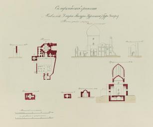 Keywords: Antiquities of Samarkand. Mausoleum of Emir Timur Kuragan (Gur-Emir). Plans, Elevations, and Sections WDL3575.png Artwork ru Богаевский иколай Владими ович 1843 1912 гг fr Bogaevskii Nikolaï V 1843-1912 en Bogaevskii Nikolai V 1843-1912 zh 亚历山大·L· ,1840-1888 年 pt Bogaevskii Nikolai V 1843-1912 ar بوغافسكي، نيكولاي ف ، 1843-1912 es Bogaevskii Nikolai V 1843-1912 ru Сама кандские д евности авзолей эми а Тиму а Ку агана Гу -Эми Планы фасады и аз езы fr Antiquités de Samarcande Mausolée de l'émir Timour Kuragan Gour Emir Plans élévations et sections en Antiquities of Samarkand Mausoleum of Emir Timur Kuragan Gur-Emir Plans Elevations and Sections zh 撒马尔罕古迹 埃米尔帖 儿·库拉甘的陵墓(古尔-埃米尔) 平 图 立 图和截 图 pt Antiguidades de Samarcanda Mausoléu de Tamerlão Gur-Emir Planos elevações e seções ar آثار سمرقند ضريح الأمير تيمور كوراجان گورِ أمير التصميمات والمساقط الأمامية والمقاطع ru Этот план фасад и аз езы мавзолея Гу -Эми в Сама канде Узбекистан соде жится в а хеологической части <em> Ту кестанского альбома </em> Шеститомное фотог афическое исследование было п оведено в 1871 1872 гг под пат онажем гене ала Константина П фон Кауфмана пе вого гене ал-губе нато а 1867 1882 гг Ту кестана как называли те ито ию Цент альной Азии п инадлежавшую Российской импе ии В альбоме уделяется особое внимание исламскому а хитекту ному наследию Сама канда включая мавзолей Гу -Эми с пе сидского г обница повелителя пе енесший множество пов еждений на п отяжении веков Гу -Эми известен в пе вую оче едь как место захо онения Тиму а Таме лана хотя Тиму начал его ст оительство еще в 1403 г в память о своем любимом внуке ухаммаде Султане кото ый в конце XIV в пост оил на этом месте об азовательный цент включающий в себя <em>мед есе</em> елигиозную школу и мемо иальный комплекс <em>ханака</em> Его внезапная сме ть в воз асте 27 лет лишила Тиму а изб анного им наследника и п авитель вы азил свое го е во впечатляющих азме ах мавзолея а момент сме ти Тиму а от пневмонии в 1405 г г обница еще не была заве шена После его похо он Гу -Эми стал фактически мавзолеем Тиму идов Заве шенный внуком Тиму а Улугбеком Гу -Эми включает в себя основное куполооб азное ст оение а также мед есе ханаку четы е мина ета и конст укцию большого входа ведущего во дво Здания пок ыты ке амикой <br>А хитекту ные че тежи; Исламская а хитекту а; огильные памятники; Тиму 1336-1405 гг ; Г обницы fr Ce dessin de plan d'élévation et de sections de l'intérieur du mausolée de Gour Emir à Samarcande Ouzbékistan est extrait de l'ouvrage archéologique <em>Album du Turkestan</em> Cet inventaire photographique en six volumes fut réalisé entre 1871 et 1872 sous le patronage du général Konstantin P von Kaufman premier gouverneur général 1867-1882 du Turkestan nom donné aux territoires d'Asie centrale de l'Empire russe L'album consacre une attention particulière à l'héritage de l'architecture islamique de Samarcande notamment Gour Emir « tombe du souverain » en persan qui a subi d'importants dommages au cours des siècles Bien qu'il soit principalement connu comme étant le lieu de sépulture de Tamerlan Gour Emir fut commencé sous Tamerlan en 1403 pour commémorer la mort de son petit-fils bien-aimé le sultan Mahomet qui avait construit un centre d'enseignement incluant une <em>madrasa</em> école religieuse et un grand ensemble commémoratif <em>khanaka</em> sur le site à la fin du XIV<sup>e</sup> siècle Sa mort soudaine à l'âge de 27 ans priva Tamerlan du successeur qu'il avait choisi et les dimensions imposantes du mausolée reflètent le chagrin du souverain Le sanctuaire n'était pas encore achevé lorsque Tamerlan décéda d'une pneumonie en 1405 Lorsqu'il y fut enterré Gour Emir devint le mausolée des Timourides Terminé sous le petit-fils de Tamerlan Ulugh Beg Gour Emir comportait la structure principale en forme de dôme une madrasa une khanaka quatre minarets et une grande structure d'entrée menant vers la cour Les bâtiments étaient couverts d'art céramique <br>Dessins architecturaux; Architecture islamique; Monuments funéraires; Tamerlan 1336-1405; Tombes en This plan elevation and sections of the Gur-Emir mausoleum in Samarkand Uzbekistan is from the archeological part of <em>Turkestan Album</em> The six-volume photographic survey was produced in 1871-72 under the patronage of General Konstantin P von Kaufman the first governor-general 1867-82 of Turkestan as the Russian Empire s Central Asian territories were called The album devotes special attention to Samarkand s Islamic architectural heritage including Gur-Emir Persian for tomb of the ruler which suf