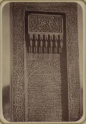 Keywords: Antiquities of Samarkand. Mosque of Khodzha Akhrar. Top. Inscription on the Tombstone at the Grave of Khodzha Akhrar WDL3749.png Artwork ru Богаевский иколай Владими ович 1843 1912 гг fr Bogaevskii Nikolaï V 1843-1912 en Bogaevskii Nikolai V 1843-1912 zh 亚历山大·L· ,1840-1888 年 pt Bogaevskii Nikolai V 1843-1912 ar بوغافسكي، نيكولاي ف ، 1843-1912 es Bogaevskii Nikolai V 1843-1912 ru Сама кандские д евности ечеть Ходжа Ах а Ве х адпись на надг обном камне на могиле Ходжа Ах а а fr Antiquités de Samarcande Mosquée de Khodzha Akhrar Partie supérieure Inscription sur la pierre tombale de Khodzha Akhrar en Antiquities of Samarkand Mosque of Khodzha Akhrar Top Inscription on the Tombstone at the Grave of Khodzha Akhrar zh 撒马尔罕古迹 贾·阿赫拉尔清 寺,顶部 贾·阿赫拉尔墓 的墓碑铭文 pt Antiguidades de Samarcanda Mesquita de Khodzha Akhrar Parte superior Inscrição na lápide da sepultura de Khodzha Akhrar ar آثار سمرقند مسجد خواجه أحرار الجزء العلوي نقش على شاهد قبر خواجه أحرار ru Эта фотог афия внут енней части мавзолея Ходжа Ах а в Сама канде Узбекистан соде жится в а хеологической части <em> Ту кестанского альбома </em> Шеститомное фотог афическое исследование было подготовлено и издано в 1871 1872 гг под пат онажем гене ала Константина П фон Кауфмана пе вого гене ал-губе нато а 1867 1882 гг Ту кестана как называли в то в емя те ито ию Цент альной Азии п инадлежавшую Российской импе ии В альбоме уделяется особое внимание исламскому а хитекту ному наследию Сама канда а фотог афии изоб ажен надг обный камень на могиле известного мистика XV века Ходжа Ах а а 1403 1489 гг аскета и п иве женца суфизма обладавшего ог омным духовным влиянием в Цент альной Азии в последние десятилетия династии Тиму идов Считается что он основал мечети не только в Сама канде но и в Буха е Ге ате и Кабуле Ансамбль Ходжа Ах а в Сама канде включал несколько ст оений в том числе зимнюю и летнюю мечети и кладбище аходящийся в мечети надг обный камень окаймлен полосой езной надписи выполненной изысканным укописным пе сидско-а абским письмом В цент альной части на пове хности есть углубление в кото ом соде жатся д угие надписи об амленные ст ельчатой а кой с ботаническими фигу ами и увенчанной восьмиконечной звездой ад а кой нависает сталактитовый ба ельеф подде живающий главную священную надпись Усыпальница Ходжа Ах а а была важным местом паломничества <br> адписи; Исламская а хитекту а; ечети; Фотог афические исследования; огильные памятники; Г обницы fr Cette photographie de l'intérieur du sanctuaire de Khodzha Akhrar à Samarcande Ouzbékistan est extraite de l'ouvrage archéologique <em>Album du Turkestan</em> Cet inventaire photographique en six volumes fut réalisé entre 1871 et 1872 sous le patronage du général Konstantin P von Kaufman premier gouverneur général 1867-1882 du Turkestan nom donné aux territoires d'Asie centrale de l'Empire russe L'album consacre une attention particulière à l'héritage de l'architecture islamique de Samarcande Cette vue présente la pierre tombale de Khodzha Akhrar 1403-1489 éminent mystique du XV<sup>e</sup> siècle Ascète et soufi Khodzha Akhrar exerça une grande influence spirituelle en Asie centrale au cours des dernières décennies de la dynastie timouride Il aurait établi des mosquées non seulement à Samarcande mais également à Boukhara Hérât et Kaboul L'ensemble de Khodzha Akhrar à Samarcande contenait plusieurs structures y compris des mosquées d'hiver et d'été et un cimetière Située à l'intérieur de la mosquée cette pierre tombale est encadrée d'une bande d'inscription en écriture cursive perso-arabe sophistiquée Au centre la surface est encastrée et recouverte d'inscriptions encadrées par un arceau pointu qui est décoré de figures à fleurs et surmonté d'une étoile à huit branches Au-dessus de cet arceau pointu un élément encorbellé en forme de « stalactites » semble soutenir la principale inscription sacrée Le sanctuaire de Khodzha Akhrar était un lieu de pèlerinage important <br>Inscriptions; Architecture islamique; Mosquées; Inventaires photographiques; Monuments funéraires; Tombes en This photograph of the interior of the Khodzha Akhrar shrine in Samarkand Uzbekistan is from the archeological part of <em>Turkestan Album</em> The six-volume photographic survey was produced in 1871-72 under the patronage of General Konstantin P von Kaufman the first governor-general 1867-82 of Turkestan as the Russian Empire s Central Asian territories were called The album devotes special attention to Samarkand s Islamic architectural heritage Seen h