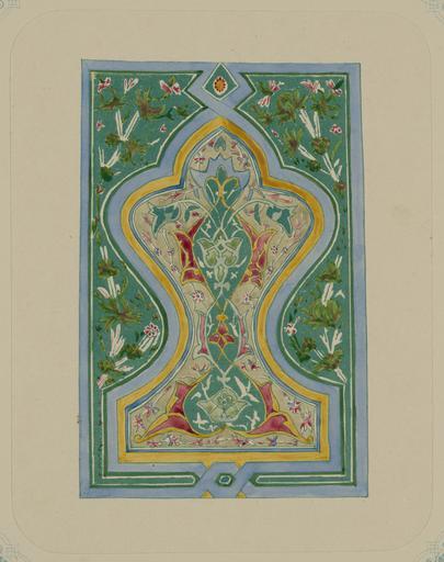 | Keywords: Antiquities of Samarkand. Tomb of the Saint Kusam-ibn-Abbas (Shah-i Zindah) and Adjacent Mausoleums. Masoleum of Abu Tengi. Details on the External Arched-Niche Panel (Bottom) WDL3909.png Artwork ru Шостак Л А fr Shostak L A en Shostak L A zh L A ·斯塔克 pt Shostak L A ar شوستاك، ل أ es Shostak L A ru Сама кандские д евности Г обница святого Куссама ибн Абасса Шах-Зиндэ и мавзолеи п и ней авзолей Абу-Тенги Отделка панели на ужной а очной ниши низ fr Antiquités de Samarcande Sépulcre de Kusam-ibn-Abbas Shah-i Zindah et mausolées adjacents Mausolée d'Abu Tengi Détails sur le panneau extérieur inférieur de la niche voûtée en Antiquities of Samarkand Tomb of the Saint Kusam-ibn-Abbas Shah-i Zindah and Adjacent Mausoleums Masoleum of Abu Tengi Details on the External Arched-Niche Panel Bottom zh 撒马尔罕古迹 库萨姆-伊 -阿巴斯之墓(夏伊辛达)及其邻近陵墓 阿布·腾吉的陵墓 外部拱形壁龛嵌 特写(底部) pt Antiguidades de Samarcanda Túmulo do Santo Kusam-ibn-Abbas Shah-i Zindah e mausoléus adjacentes Mausoléu de Abu Tengi Detalhe do painel do nicho em arco externo parte inferior ar آثار سمرقند ضَرِيح الوَلِيّ قثم بن عباس شاه زنده والأضرحة المجاورة ضريح أبو تنجي تفاصيل موجودة على لوحة المشكاة المقوسة الخارجية الجزء السفلي ru Этот аква ельный эскиз ке амической панели в главной а очной нише мавзолея Усто Али асположенного на те ито ии нек ополя Шах-Зиндэ в Сама канде соде жится в а хеологической части <em> Ту кестанского альбома </em> Шеститомное фотог афическое исследование было подготовлено и издано в 1871 1872 гг под пат онажем гене ала Константина П фон Кауфмана пе вого гене ал-губе нато а 1867 1882 гг Ту кестана как называли в то в емя те ито ию Цент альной Азии п инадлежавшую Российской импе ии В альбоме уделяется особое внимание исламской а хитекту е Сама канда в том числе памятникам XIV и XV вв пе иода п авления Таме лана и его п еемников Шах-Зиндэ на пе сидском языке означает живой ца ь почитается как мемо иал Куссама ибн Абасса двою одного б ата п о ока ухаммада Заказчик мавзолея пост оенного п име но в 1380 г неизвестен однако этот памятник не едко называют по имени главного ст оителя Усто Али есефи есмот я на то что фасад мавзолея пов ежден сох анившиеся части о намента входят в число наиболее изысканных деко ативных элементов во всем нек ополе Ке амические ук ашения включают в себя многоцветную плитку майолику выложенную в виде геомет ических узо ов полосы с надписями на а абском языке и фаянсовые панели Эта фаянсовая панель асположенная в нижней части на левой сто оне а очной ниши ук ашена цветочными узо ами сг уппи ованными вок уг ост оконечного т илистника с листовидными ка тушами есмот я на то что данный эскиз не в полной ме е от ажает сложность о игинального витиеватого узо а он соде жит инфо мацию о цвете кото ую невозможно было пе едать п и помощи фотог афий того в емени <br>Исламская а хитекту а; Фотог афические исследования; огильные памятники; Шах-Зиндэ; Г обницы fr Cette esquisse à l aquarelle d'un panneau en céramique dans la niche de l'arceau principal du mausolée Usto Ali situé dans la nécropole de Shah-i Zindah à Samarcande est extraite de l'ouvrage archéologique <em>Album du Turkestan</em> Cet inventaire photographique en six volumes fut réalisé entre 1871 et 1872 sous le patronage du général Konstantin P von Kaufman premier gouverneur général 1867-1882 du Turkestan nom donné aux territoires d'Asie centrale de l'Empire russe L'album consacre une attention particulière à l'architecture islamique de Samarcande avec notamment des monuments datant des XIV<sup>e</sup> et XV<sup>e</sup> siècles lors du règne de Tamerlan et de ses successeurs L'ensemble de Shah-i Zindah « roi vivant » en persan est un mémorial dédié à la vénération de Kusam-ibn-Abbas cousin du prophète Mahomet Bien que le mécène de ce mausolée construit vers 1380 soit inconnu il est souvent appelé par le nom de son maître d'œuvre Usto Ali Nesefi Malgré la disparition de parties de la façade les vestiges des ornements révèlent qu'il s'agissait de l'une des décorations les plus sophistiquées de toute la nécropole Ses céramiques incluent des carreaux de majolique polychromes formant des motifs géométriques ainsi que des bandes d'inscriptions en arabe et des panneaux de faïence Ce panneau de faïence situé sur la partie inférieure du c