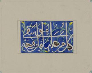 Keywords: Antiquities of Samarkand. Tomb of the Saint Kusam-ibn-Abbas (Shah-i Zindah) and Adjacent Mausoleums. Mausoleum of Shirin Bika. Inscription on the Right Side WDL3918.png Artwork ru Шостак Л А fr Shostak L A en Shostak L A zh L A ·斯塔克 pt Shostak L A ar شوستاك، ل أ es Shostak L A ru Сама кандские д евности Г обница святого Куссама ибн Абасса Шах-Зиндэ и мавзолеи п и ней авзолей Ши ин-Бика адпись на п авой сто оне fr Antiquités de Samarcande Sépulcre de Kusam-ibn-Abbas Shah-i Zindah et mausolées adjacents Mausolée de Shirin Bika Inscription sur le côté droit en Antiquities of Samarkand Tomb of the Saint Kusam-ibn-Abbas Shah-i Zindah and Adjacent Mausoleums Mausoleum of Shirin Bika Inscription on the Right Side zh 撒马尔罕古迹 库萨姆-伊 -阿巴斯之墓(夏伊辛达)及其邻近陵墓 林-比卡陵墓 右侧铭文 pt Antiguidades de Samarcanda Túmulo do Santo Kusam-ibn-Abbas Shah-i Zindah e mausoléus adjacentes Mausoléu de Shirin Bika Inscrição do lado direito ar آثار سمرقند ضَرِيح الوَلِيّ قثم بن عباس شاه زنده والأضرحة المجاورة ضريح شيرين بيك نقش على الجانب الأيمن ru Этот аква ельный исунок элемента на фасаде мавзолея Ши ин-Бика-Ака асположенного на те ито ии нек ополя Шах-Зиндэ в Сама канде Узбекистан соде жится в а хеологической части <em> Ту кестанского альбома </em> Шеститомное фотог афическое исследование было подготовлено и издано в 1871 1872 гг под пат онажем гене ала Константина П фон Кауфмана пе вого гене ал-губе нато а 1867 1882 гг Ту кестана как называли в то в емя те ито ию Цент альной Азии п инадлежавшую Российской импе ии В альбоме уделяется особое внимание исламской а хитекту е Сама канда в том числе памятникам XIV и XV вв пе иода п авления Тиму а Таме лана и его п еемников Особенно следует отметить ансамбль Шах-Зиндэ на пе сидском языке означает живой ца ь кото ый пост оен на возвышенности бывшей местом д евнего поселения известного как Аф асиаб авзолей Ши ин-Бека пост оенный в 1385 1386 гг для пог ебения младшей сест ы Тиму а входит в число величайших достижений в области искусства эпохи Тиму идов Цент альным элементом его конст укции является главная а ка или <em>пештак</em> с по талом богато ук ашенная узо чатой ке амической плиткой Ф агмент изоб аженный на исунке п едставляет собой глазу ованную панель с надписью в укописном стиле сулюс выполненной белым цветом на азноцветном фоне Судя по всему этот ф агмент асположен в ве хней части с внут енней сто оны п авой половины фасада а ки есмот я на свою уп ощенность подобные аква ельные эскизы соде жат инфо мацию о цвете и детали кото ые невозможно было пе едать п и помощи фотог афий того в емени <br>А хитекту ные ук ашения и деко ативные элементы; Исламская а хитекту а; огильные памятники; Шах-Зиндэ; Г обницы; Аква ельные исунки fr Cette esquisse à l'aquarelle d'un détail de la façade du mausolée de Shirin Bika Aka de la nécropole de Shah-i Zindah à Samarcande Ouzbékistan est extraite de l'ouvrage archéologique <em>Album du Turkestan</em> Cet inventaire photographique en six volumes fut réalisé entre 1871 et 1872 sous le patronage du général Konstantin P von Kaufman premier gouverneur général 1867-1882 du Turkestan nom donné aux territoires d'Asie centrale de l'Empire russe L'album consacre une attention particulière à l'architecture islamique de Samarcande avec notamment des monuments datant des XIV<sup>e</sup> et XV<sup>e</sup> siècles lors du règne de Tamerlan et de ses successeurs Il convient de souligner que Shah-i Zindah « roi vivant » en persan est un mémorial dédié à la vénération de Kusam-ibn-Abbas cousin du prophète Mohamed Le mausolée de Shirin Bika Aka fut construit de 1385 à 1386 pour la sœur cadette de Tamerlan et il est considéré comme l une des grandes réalisations de l art timouride Sa conception place en son centre l arceau principal ou <em>peshtak</em> contenant le portail et recouvert d abondants ornements en carreaux de céramique Le fragment reproduit dans cette esquisse se compose d un panneau d inscription vernissé avec des lettres cursives blanches de style thoulouth sur fond polychrome Il semble être situé sur la partie supérieure de la façade intérieure droite de l arceau Bien que simplifiées ces aquarelles fournissent des informations relatives aux couleurs qui ne sont pas disponibles sur la photographie de l'époque <br>Décorations et ornements architecturaux; Architecture islamique; Monuments funéraires; Shāh-i Zindah; Tombes; Aquar