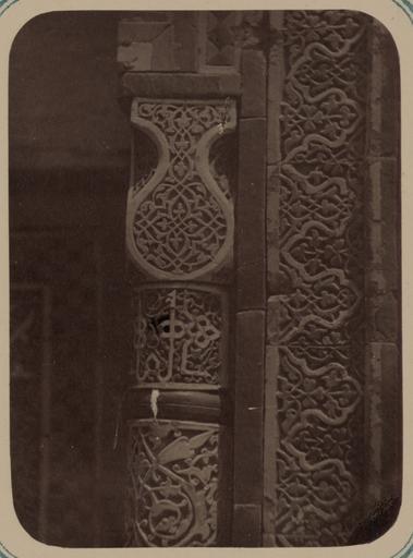 Keywords: Antiquities of Samarkand. Tomb of the Saint Kusam-ibn-Abbas (Shah-i Zindah) and Adjacent Mausoleums. Mausoleum of Tamerlane's Daughter, Toglu Tekin. Column Capital WDL3640.png Artwork ru Богаевский иколай Владими ович 1843 1912 гг fr Bogaevskii Nikolaï V 1843-1912 en Bogaevskii Nikolai V 1843-1912 zh 亚历山大·L· ,1840-1888 年 pt Bogaevskii Nikolai V 1843-1912 ar بوغافسكي، نيكولاي ف ، 1843-1912 es Bogaevskii Nikolai V 1843-1912 ru Сама кандские д евности Г обница святого Куссама ибн Абасса Шах-Зиндэ и мавзолеи п и ней авзолей доче и Таме лана Туглу-Текин Капитель колонны fr Antiquités de Samarcande Sépulcre de Kusam-ibn-Abbas Shah-i Zindah et mausolées adjacents Mausolée de la fille de Tamerlan Toglu Tekin Chapiteau de colonne en Antiquities of Samarkand Tomb of the Saint Kusam-ibn-Abbas Shah-i Zindah and Adjacent Mausoleums Mausoleum of Tamerlane's Daughter Toglu Tekin Column Capital zh 撒马尔罕古迹 库萨姆-伊 -阿巴斯之墓(夏伊辛达)及其邻近陵墓 帖 儿女儿托格鲁·特金的陵墓 柱头 pt Antiguidades de Samarcanda Túmulo do Santo Kusam-ibn-Abbas Shakhi Zinda e mausoléus adjacentes Mausoléu da filha de Tamerlão Toglu Tekin Capitel da coluna ar آثار سمرقند ضَرِيح الوَلِيّ قثم بن عباس شاه زنده والأضرحة المجاورة ضريح ابنة تَيْمورلِنك، توغلو-تكين تاج العمود ru Эта фотог афия капители колонны на фасаде мавзолея Туглу-Текин эми а Хуссейна в нек ополе Шах-Зиндэ в Сама канде соде жится в а хеологической части <em> Ту кестанского альбома </em> Шеститомное фотог афическое исследование было подготовлено и издано в 1871 1872 гг под пат онажем гене ала Константина П фон Кауфмана пе вого гене ал-губе нато а 1867 1882 гг Ту кестана как называли в то в емя те ито ию Цент альной Азии п инадлежавшую Российской импе ии Основными составителями фотомате иалов стали п икоманди ованный к а мии востоковед Александ Людвигович Кун и военный инжене иколай Владими ович Богаевский Они уделяли особое внимание исламской а хитекту е Сама канда в том числе памятникам XIV и XV вв пе иода п авления Тиму а Таме лана и его п еемников Ансамбль Шах-Зиндэ на пе сидском языке означает живой ца ь почитается как мемо иал Куссама ибн Абасса двою одного б ата п о ока ухаммада В 1386 г был пост оен мавзолей для Туглу-Текин доче и эми а Ходжи и мате и эми а Хуссейна одного из вельмож Тиму а есмот я на полученные с течением в емени пов еждения фасад и большая часть деко ативных элементов из многоцветной плитки сох анились а фотог афии видна капитель езной колонны из глазу ованной те акоты п имыкающей к п авому углу а ки фасада или <em>пештаку</em> Сложный исунок сочетает в себе волнистые цветочные мотивы и пе еплетающиеся фигу ы Сп ава находится ве тикальная полоса из ке амических плиток с узо ом в виде т илистника <br>А хеологические объекты; А хитекту ные ук ашения и деко ативные элементы; Исламская а хитекту а; Фотог афические исследования; огильные памятники; Шах-Зиндэ; Г обницы fr Cette photographie d'un chapiteau de colonne sur la façade du mausolée de Toglu Tekin émir Hussein situé dans la nécropole de Shah-i Zindah à Samarcande est extraite de l'ouvrage archéologique <em>Album du Turkestan</em> Cet inventaire photographique en six volumes fut réalisé entre 1871 et 1872 sous le patronage du général Konstantin P von Kaufman premier gouverneur général 1867-1882 du Turkestan nom donné aux territoires d'Asie centrale de l'Empire russe Les documents visuels furent essentiellement compilés par Aleksandr L Kun orientaliste rattaché à l'armée et Nikolai V Bogaevskii ingénieur militaire Ces derniers consacrèrent une attention particulière à l'architecture islamique de Samarcande avec notamment des monuments datant des XIV<sup>e</sup> et XV<sup>e</sup> siècles lors du règne de Tamerlan et de ses successeurs L'ensemble de Shah-i Zindah « roi vivant » en persan est un mémorial dédié à la vénération de Kusam-ibn-Abbas cousin du prophète Mahomet En 1386 un mausolée fut bâti pour Toglu Tekin fille de l'émir Khodzha et mère de l'émir Hussein un des notables de Tamerlan Malgré les pertes subies au fil des siècles la façade et la plupart de ses carreaux ornementaux polychromes existent encore aujourd'hui Cette vue présente le chapiteau d'une colonne en terre cuite sculptée et vernissée fixée à l'angle droit de l'arceau de façade ou <em>peshtak</em> Les ornements sophistiqués mêlent les motifs à fleurs sinueux avec les entrelacs Une bande verti