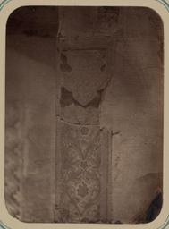 | Keywords: Antiquities of Samarkand. Tomb of the Saint Kusam-ibn-Abbas (Shah-i Zindah) and Adjacent Mausoleums. Mausoleum of Emir Abu Tengi. Column Capital WDL3613.png Artwork ru Богаевский иколай Владими ович 1843 1912 гг fr Bogaevskii Nikolaï V 1843-1912 en Bogaevskii Nikolai V 1843-1912 zh 亚历山大·L· ,1840-1888 年 pt Bogaevskii Nikolai V 1843-1912 ar بوغافسكي، نيكولاي ف ، 1843-1912 es Bogaevskii Nikolai V 1843-1912 ru Сама кандские д евности Г обница святого Куссама ибн Абасса Шах-Зиндэ и мавзолеи п и ней авзолей эми а Абу-Тенги Капитель колонны fr Antiquités de Samarcande Sépulcre de Kusam-ibn-Abbas Shah-i Zindah et mausolées adjacents Mausolée de l'émir Abu Tengi Chapiteau de colonne en Antiquities of Samarkand Tomb of the Saint Kusam-ibn-Abbas Shah-i Zindah and Adjacent Mausoleums Mausoleum of Emir Abu Tengi Column Capital zh 撒马尔罕古迹 库萨姆-伊 -阿巴斯之墓(夏伊辛达)及其邻近陵墓 埃米尔·阿布·腾吉的陵墓 柱头 pt Antiguidades de Samarcanda Túmulo do Santo Kusam-ibn-Abbas Shakhi Zinda e mausoléus adjacentes Mausoléu do Emir Abu Tengi Capitel da coluna ar آثار سمرقند ضَرِيح الوَلِيّ قثم بن عباس شاه زنده والأضرحة المجاورة ضريح الأمير أبو تنجي تاج العمود ru Эта фотог афия мавзолея Усто Али в нек ополе Шах-Зиндэ в Сама канде соде жится в а хеологической части <em> Ту кестанского альбома </em> Шеститомное фотог афическое исследование было подготовлено и издано в 1871 1872 гг под пат онажем гене ала Константина П фон Кауфмана пе вого гене ал-губе нато а 1867 1882 гг Ту кестана как называли в то в емя те ито ию Цент альной Азии п инадлежавшую Российской импе ии В альбоме уделяется особое внимание исламской а хитекту е Сама канда в том числе памятникам XIV и XV вв пе иода п авления Таме лана и его п еемников Шах-Зиндэ на пе сидском языке означает живой ца ь почитается как мемо иал Куссама ибн Абасса двою одного б ата п о ока ухаммада Заказчик этого мавзолея пост оенного около 1380 г неизвестен авзолей часто называют по имени главного ст оителя Усто Али есефи Большая часть фасада п ете пела значительные аз ушения однако сох анившиеся остатки ук ашений п едставляют собой одни из самых изысканных деко ативных элементов во всем нек ополе Ке амика включает многоцветную плитку майолику с геомет ическими и ботаническими узо ами фаянсовые панели а абские надписи и деко ативные колонны об амляющие входную а ку а фотог афии показана капитель ке амической колонны в фо ме пе еве нутого заост енного т илистника в то в емя как на самой колонне видны пе еплетающиеся цветочные мотивы Основными цветами фасада являются темно-голубой и би юзовый <br>А хитекту ные ук ашения и деко ативные элементы; Колонны; Исламская а хитекту а; Фотог афические исследования; огильные памятники; Шах-Зиндэ; Г обницы fr Cette photographie du mausolée Usto Ali situé dans la nécropole de Shah-i Zindah à Samarcande est extraite de l'ouvrage archéologique <em>Album du Turkestan</em> Cet inventaire photographique en six volumes fut réalisé entre 1871 et 1872 sous le patronage du général Konstantin P von Kaufman premier gouverneur général 1867-1882 du Turkestan nom donné aux territoires d'Asie centrale de l'Empire russe L'album consacre une attention particulière à l'architecture islamique de Samarcande avec notamment des monuments datant des XIV<sup>e</sup> et XV<sup>e</sup> siècles lors du règne de Tamerlan et de ses successeurs L'ensemble de Shah-i Zindah « roi vivant » en persan est un mémorial dédié à la vénération de Kusam-ibn-Abbas cousin du prophète Mahomet Le commanditaire de ce mausolée construit en 1380 environ étant inconnu ce dernier est souvent appelé par le nom de son maître d'œuvre Usto Ali Nesefi Malgré les dommages considérables sur la majeure partie de la façade les vestiges des ornements révèlent qu'il s'agissait de l'une des décorations les plus sophistiquées de toute la nécropole Les céramiques incluent des carreaux de majolique polychromes formant des motifs géométriques et à fleurs des panneaux de faïence et des inscriptions en arabe Elles décorent également les colonnes ornementales encadrant l'arceau d'entrée Le chapiteau de colonne en céramique présenté ici est composé d'un trèfle renversé aux feuilles pointues tandis que la colonne arbore des motifs à fleurs entrelacés Les couleurs de base utilisées pour la façade sont le bleu foncé et le bleu turquoise <br>Décorations et ornements architecturaux; Colonnes; Architecture islamique; Inventaires photographi