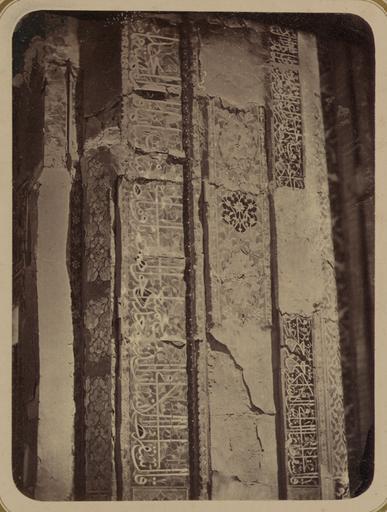 Keywords: Antiquities of Samarkand. Tomb of the Saint Kusam-ibn-Abbas (Shah-i Zindah) and Adjacent Mausoleums. Mausoleum of Shirin Bika. Section of Inscription of the Left Side of the Facade WDL3696.png Artwork ru Богаевский иколай Владими ович 1843 1912 гг fr Bogaevskii Nikolaï V 1843-1912 en Bogaevskii Nikolai V 1843-1912 zh 亚历山大·L· ,1840-1888 年 pt Bogaevskii Nikolai V 1843-1912 ar بوغافسكي، نيكولاي ف ، 1843-1912 es Bogaevskii Nikolai V 1843-1912 ru Сама кандские д евности Г обница святого Куссама ибн Абасса Шах-Зиндэ и мавзолеи п и ней авзолей Ши ин-Бека Часть надписи с левой сто оны фасада fr Antiquités de Samarcande Sépulcre de Kusam-ibn-Abbas Shah-i Zindah et mausolées adjacents Mausolée de Shirin Bika Section de l'inscription du côté gauche de la façade en Antiquities of Samarkand Tomb of the Saint Kusam-ibn-Abbas Shah-i Zindah and Adjacent Mausoleums Mausoleum of Shirin Bika Section of Inscription of the Left Side of the Facade zh 撒马尔罕古迹 库萨姆-伊 -阿巴斯之墓(夏伊辛达)及其邻近陵墓 林-比卡陵墓 立 左侧的部分铭文 pt Antiguidades de Samarcanda Túmulo do Santo Kusam-ibn-Abbas Shah-i Zindah e mausoléus adjacentes Mausoléu de Shirin Bika Área de inscrições do lado esquerdo da fachada ar آثار سمرقند ضَرِيح الوَلِيّ قثم بن عباس شاه زنده والأضرحة المجاورة ضريح شيرين بيك جزء من نقش على الجانب الأيسر من الواجهة ru Эта фотог афия фасада мавзолея Ши ин-Бек-Ака в нек ополе Шах-Зиндэ в Сама канде Узбекистан соде жится в а хеологической части <em> Ту кестанского альбома </em> Шеститомное фотог афическое исследование было подготовлено и издано в 1871 1872 гг под пат онажем гене ала Константина П фон Кауфмана пе вого гене ал-губе нато а 1867 1882 гг Ту кестана как называли в то в емя те ито ию Цент альной Азии п инадлежавшую Российской импе ии В альбоме уделяется особое внимание исламской а хитекту е Сама канда в том числе памятникам XIV и XV вв пе иода п авления Тиму а Таме лана и его п еемников Особенно следует отметить ансамбль Шах-Зиндэ на пе сидском языке означает живой ца ь кото ый почитается как мемо иал Куссама ибн Абасса двою одного б ата п о ока ухаммада авзолей Ши ин-Бек-Ака был пост оен в 1385 1386 гг для младшей сест ы Тиму а и свидетельствует о пе сидском влиянии есмот я на значительные пов еждения на фасаде сох анились обильные ке амические ук ашения в том числе анние об азцы составной мозаики цвета кото ой ва ьи уются от о анжевого и к асного до темно-синего Этот ф агмент асположен слева от входной а ки и соде жит две полосы с надписями выполненными в укописном стиле сулюс где буквы пе еплетаются с цветочными мотивами Авто ство некото ых надписей п иписывают Сок ату в том числе В п авде люди этого ми а подобны ликующим птицам ежду надписями видна полоса с изящными цветочными мотивами <br>А хеологические объекты; А хитекту ные ук ашения и деко ативные элементы; Исламская а хитекту а; Фотог афические исследования; огильные памятники; Шах-Зиндэ; Г обницы fr Cette photographie de la façade du mausolée de Shirin Bika Aka situé dans la nécropole de Shah-i Zindah à Samarcande Ouzbékistan est extraite de l'ouvrage archéologique <em>Album du Turkestan</em> Cet inventaire photographique en six volumes fut réalisé entre 1871 et 1872 sous le patronage du général Konstantin P von Kaufman premier gouverneur général 1867-1882 du Turkestan nom donné aux territoires d'Asie centrale de l'Empire russe L'album consacre une attention particulière à l'architecture islamique de Samarcande avec notamment des monuments datant des XIV<sup>e</sup> et XV<sup>e</sup> siècles lors du règne de Tamerlan et de ses successeurs Il convient de souligner que l'ensemble de Shah-i Zindah « roi vivant » en persan est un mémorial dédié à la vénération de Kusam-ibn-Abbas cousin du prophète Mahomet Le mausolée de Shirin Bika Aka d'influence perse fut construit de 1385 à 1386 pour la petite sœur de Tamerlan Malgré les dommages considérables la façade a conservé de nombreux ornements de céramique notamment des exemples des premières mosaïques composites avec une palette de couleurs allant de l'orange et du rouge au bleu foncé Le fragment présenté ici appartient au côté gauche de l'arceau d'entrée et inclut deux bandes d'inscription avec des caractères en style cursif thoulouth entrelacés de motifs à fleurs Certaines des inscriptions ont été attribuées à Socrate notamment « En réalité les citoyens de ce monde sont comme des oisea
