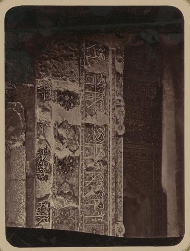 | Keywords: Antiquities of Samarkand. Tomb of the Saint Kusam-ibn-Abbas (Shah-i Zindah) and Adjacent Mausoleums. Mausoleum of Shirin Bika. Section of Inscription of the Right Side of the Facade WDL3697.png Artwork ru Богаевский иколай Владими ович 1843 1912 гг fr Bogaevskii Nikolaï V 1843-1912 en Bogaevskii Nikolai V 1843-1912 zh 亚历山大·L· ,1840-1888 年 pt Bogaevskii Nikolai V 1843-1912 ar بوغافسكي، نيكولاي ف ، 1843-1912 es Bogaevskii Nikolai V 1843-1912 ru Сама кандские д евности Г обница святого Куссама ибн Абасса Шах-Зиндэ и мавзолеи п и ней авзолей Ши ин-Бека Часть надписи с п авой сто оны фасада fr Antiquités de Samarcande Sépulcre de Kusam-ibn-Abbas Shah-i Zindah et mausolées adjacents Mausolée de Shirin Bika Section de l'inscription du côté droit de la façade en Antiquities of Samarkand Tomb of the Saint Kusam-ibn-Abbas Shah-i Zindah and Adjacent Mausoleums Mausoleum of Shirin Bika Section of Inscription of the Right Side of the Facade zh 撒马尔罕古迹 库萨姆-伊 -阿巴斯之墓(夏伊辛达)及其邻近陵墓 林-比卡陵墓 立 右侧的部分铭文 pt Antiguidades de Samarcanda Túmulo do Santo Kusam-ibn-Abbas Shah-i Zindah e mausoléus adjacentes Mausoléu de Shirin Bika Área de inscrição do lado direito da fachada ar آثار سمرقند ضَرِيح الوَلِيّ قثم بن عباس شاه زنده والأضرحة المجاورة ضريح شيرين بيك جزء من نقش على الجانب الأيمن من الواجهة ru Эта фотог афия фасада мавзолея Ши ин-Бек-Ака в нек ополе Шах-Зиндэ в Сама канде Узбекистан соде жится в а хеологической части <em> Ту кестанского альбома </em> Шеститомное фотог афическое исследование было подготовлено и издано в 1871 1872 гг под пат онажем гене ала Константина П фон Кауфмана пе вого гене ал-губе нато а 1867 1882 гг Ту кестана как называли в то в емя те ито ию Цент альной Азии п инадлежавшую Российской импе ии В альбоме уделяется особое внимание исламской а хитекту е Сама канда в том числе памятникам XIV и XV вв пе иода п авления Тиму а Таме лана и его п еемников Особенно следует отметить ансамбль Шах-Зиндэ на пе сидском языке означает живой ца ь кото ый почитается как мемо иал Куссама ибн Абасса двою одного б ата п о ока ухаммада авзолей Ши ин-Бек-Ака был пост оен в 1385 1386 гг для младшей сест ы Тиму а и свидетельствует о пе сидском влиянии есмот я на значительные пов еждения на фасаде сох анились обильные ке амические ук ашения в том числе анние об азцы составной мозаики цвета кото ой ва ьи уются от о анжевого и к асного до темно-синего Этот ф агмент асположен сп ава от входной а ки или <em>пештака</em> и соде жит две полосы с надписями выполненными в укописном стиле сулюс где буквы пе еплетаются с цветочными мотивами ежду надписями находится ве тикальная полоса с цветочными мотивами об азующими геомет ические узо ы Сп ава видна ке амическая колонна подче кивающая левый угол а ки <br>А хеологические объекты; А хитекту ные ук ашения и деко ативные элементы; Исламская а хитекту а; Фотог афические исследования; огильные памятники; Шах-Зиндэ; Г обницы fr Cette photographie de la façade du mausolée de Shirin Bika Aka situé dans la nécropole de Shah-i Zindah à Samarcande Ouzbékistan est extraite de l'ouvrage archéologique <em>Album du Turkestan</em> Cet inventaire photographique en six volumes fut réalisé entre 1871 et 1872 sous le patronage du général Konstantin P von Kaufman premier gouverneur général 1867-1882 du Turkestan nom donné aux territoires d'Asie centrale de l'Empire russe L'album consacre une attention particulière à l'architecture islamique de Samarcande avec notamment des monuments datant des XIV<sup>e</sup> et XV<sup>e</sup> siècles lors du règne de Tamerlan et de ses successeurs Il convient de souligner que l'ensemble de Shah-i Zindah « roi vivant » en persan est un mémorial dédié à la vénération de Kusam-ibn-Abbas cousin du prophète Mahomet Le mausolée de Shirin Bika Aka d'influence perse fut construit de 1385 à 1386 pour la petite sœur de Tamerlan Malgré les dommages considérables la façade a conservé de nombreux ornements de céramique notamment des exemples des premières mosaïques composites avec une palette de couleurs allant de l'orange et du rouge au bleu foncé Le fragment présenté ici appartient au côté droit de l'arceau de façade ou <em>peshtak</em> et inclut deux bandes d'inscription avec des caractères en style cursif thoulouth entrelacés de motifs à fleurs Une bande verticale avec des motifs à fleurs disposés dans des figures géométr