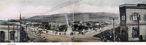 Keywords: Antofagasta Plaza Colon.jpg es Postal de la Plaza Colon de Antofagasta Chile http //www chilecollector com/archwebpost/archwebposttemas/postbigformat_1 html Carlos Brandt ca 1910 PD-old Plaza Colón Antofagasta Black and white photographs of cities Panoramics of cities in Chile |