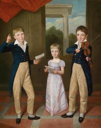 | Keywords: Antoine-Jean Gros Three Children in a House Concert.jpg  A portrait of a young girl and two young boys in a house concert Oil on canvas cm 103 81 unknown object history exhibition history credit line http //m dorotheum com/en/auctions/current-auctions/list-lots-detail/auktion/10841-old-master-paintings/lotID/114/lot/1773494-attributed-to-antoine-jean-baron-gros html 113 Dorotheum Auctions accession number PD-old-100 19th-century oil on canvas paintings Portrait paintings by Antoine-Jean Gros 19th-century portrait paintings location missing 19th-century portrait paintings of unidentified people 19th-century portrait paintings from France not categorised by year M 19th-century oil portraits of children at full length Children making music Images from Dorotheum Musicians in art Red drapery in portrait paintings |