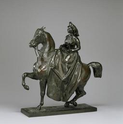 Keywords: Antoine-Louis Barye - Amazon in Costume of 1830 - Walters 27145 - Profile.jpg In the 19th century the term Amazon was applied to women riders as well as to their long riding habits or costumes This young woman mounted side-saddle may be Hélène of Mecklenberg-Schwerin 1814-1858 who married the duke of Orléans in 1837 first issued 1845-1850 bronze with green over black patina cm 36 8 36 2 14 accession number 27 145 20101 William T Walters Baltimore prior to 1889 mode of acquisition unknown Henry Walters city Baltimore Walters Art Museum Henry Walters Acquired by William T Walters before 1889 Signature Cast through from model BARYE; Number Painted inside in white W 102 The Works of Antoine-Louis Barye American Art Gallery New York New York 1889-1890 Barye Sculpture and Drawings American Federation of Arts New York 1959-1960 Antoine-Louis Barye Marion Koogler McNay Art Institute San Antonio 1965 Untamed The Art of Antoine-Louis Barye The Walters Art Museum Baltimore; Philbrook Museum of Art Tulsa; The Henry Morrison Flagler Museum Palm Beach 2007-2008 place of origin Paris France Walters Art Museum license Sculptures by Antoine-Louis Barye Media contributed by the Walters Art Museum needs category review Sculptures in the Walters Art Museum Riding habits in portraits Equestrian statues with rider in sidesaddle Sculptures of horsewomen |