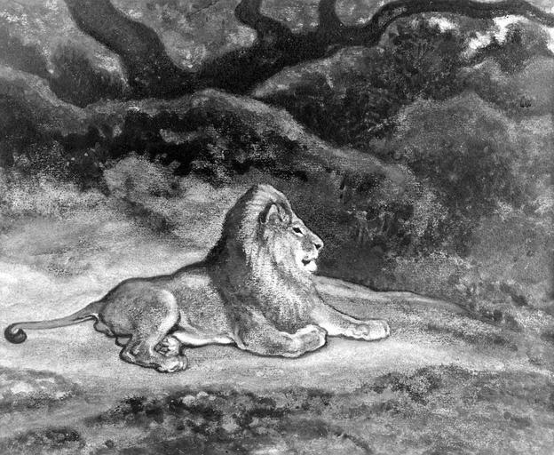 | Keywords: Antoine-Louis Barye - Lion at Rest - Walters 37816.jpg Barye posed this majestic reclining lion against a background consisting of rocks and a gnarled oak tree features familiar to him in the Forest of Fontainebleau circa 1850 s-1860s watercolor on moderately textured moderately thick cream wove paper cm 24 1 29 8 accession number 37 816 17985 William T Walters Baltimore prior to 1889 mode of acquisition unknown Henry Walters city Baltimore Walters Art Museum Henry Walters Acquired by William T Walters before 1889 Signature In red watercolor at lower right corner on recto BARYE; Mark In graphite in center on verso o The Essence of Line The Works of Antoine-Louis Barye American Art Gallery New York New York 1889-1890 The Wild Kingdom of Antoine-Louis Barye 1795-1875 Wildenstein Company New York 1994 Untamed The Art of Antoine-Louis Barye The Walters Art Museum Baltimore; Philbrook Museum of Art Tulsa; The Henry Morrison Flagler Museum Palm Beach 2007-2008 place of origin Paris France Walters Art Museum license 2D The Essence of Line Drawings and paintings by Antoine-Louis Barye French paintings in the Walters Art Museum Media contributed by the Walters Art Museum needs category review |