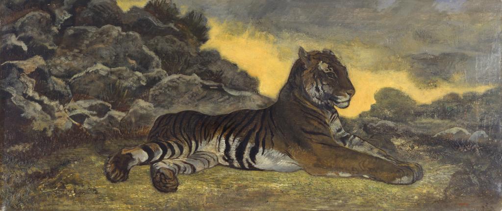 | Keywords: Antoine-Louis Barye - Tiger at Rest - Walters 37833.jpg Although Barye is often regarded as the foremost animal sculptor of the 19th century he also worked closely with a number of painters He studied with the artist Baron Antoine-Jean Gros and in the late 1820s he joined Eugène Delacroix in sketching animals at the Ménagerie du Jardin des Plantes in Paris This important city zoo was an invaluable resource for artists depicting the natural world Barye exhibited watercolors at the beginning of his career but it was only after his death that his oil paintings were discovered in his studio In this unusually large example Barye creates a fantastic image of a reclining tiger posed against the rocky sandy terrain of the Apremont Gorge in the Fontainebleau forest middle Other date century 19 Oil on canvas cm 48 9 114 accession number 37 833 22083 Hector Brame Vente Barye Hôtel Drouot Paris February 5-6 1876 no 95 Private collection Reims date of acquisition unknown by purchase Montaignac date and mode of acquisition unknown William T Walters Baltimore November 28 1884 by purchase George A Lucas as agent Henry Walters city Baltimore Walters Art Museum Henry Walters Acquired by William T Walters 1884 Signature Painted in red at lower right BARYE; Transcription Stamped from red wax seal on stretcher VENTE BARYE Des oeuvres du feu Barye Bronzes aquarelles tableaux Hotel Drouot Paris 1876 The Works of Antoine-Louis Barye American Art Gallery New York New York 1889-1890 Triumph of French Painting Masterpieces from Ingres to Matisse Baltimore Museum of Art Baltimore; Philbrook Museum of Art Tulsa; Norton Museum of Art West Palm Beach; Royal Academy of Arts London; Albright-Knox Art Gallery Buffalo; Dayton Art Institute Dayton 2000-2002 Untamed The Art of Antoine-Louis Barye The Walters Art Museum Baltimore; Philbrook Museum of Art Tulsa; The Henry Morrison Flagler Museum Palm Beach 2007-2008 place of origin Paris France Walters Art Museum license 2D Oil paintings of tigers French paintings in the Walters Art Museum Paintings of tigers by Antoine-Louis Barye 19th-century oil paintings |