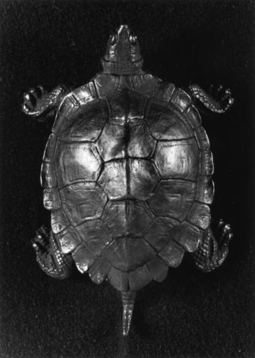 | Keywords: Antoine-Louis Barye - Turtle - Walters 2756 - Top.jpg The turtle which was probably intended to serve as a paperweight has been rendered with extraordinary attention to realistic detail This may have been an instance in which Barye had a plaster cast made from a living animal before 1845 bronze with brown patina on turtle shell and green-orange patina on underside cm 3 2 10 5 7 accession number 27 56 18041 William T / Henry Walters Collection Baltimore date and mode of acquisition unknown Walters Art Museum Henry Walters Acquired by William T or Henry Walters Signature Cold stamped in block letters BARYE The Allure of Bronze The Walters Art Gallery Baltimore 1995 Untamed The Art of Antoine-Louis Barye place of origin Paris France Walters Art Museum license Sculptures by Antoine-Louis Barye Untamed The Art of Antoine-Louis Barye Sculptures in the Walters Art Museum Turtles in art paperweights |