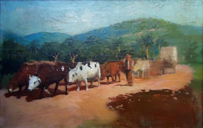 Keywords: Antonio Ferrigno, carro de boi na estrada, óleo sobre tela, 1895-1905, 18,1 x 28,2 cm, Photo Gedley Belchior Braga.jpg en Antonio Ferrigno 1863-1940 Bullock cart on the road oil on canvas c 1895-1905 18 1 x 28 2 cm Private Collection Photo Gedley Belchior Braga Probably this is one of the studies for the bullock cart that is present in the work O Café para a Estação 1903 from Museu Paulista Collection São Paulo SP 2013-07-25 Projeto del Rei Collection Antonio Ferrigno Photo Gedley Belchior Braga PD-old-auto-1923 1940 Uploaded with UploadWizard Projeto del Rei Antonio Ferrigno History of São Paulo Ox-drawn carts in Brazil Ox-drawn carts in art |