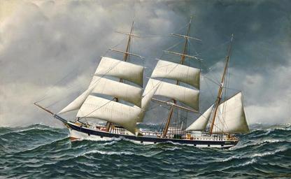 | Keywords: Antonio Jacobsen - The Norwegian bark Friedig at sea under reduced sail.jpg VhhfJAGjkgsar Artwork Creator Antonio Jacobsen 1903 oil canvas in 22 36 object history credit line signed and dated Antonio Jacobsen 1903 lower right en The Norwegian wooden bark Friedig was built by J R Andersen at Grimstad Norway in 1897 Owned by O T Tonnevold of the same port she was registered at 551 tons gross 496 net and measured 154 feet in length with a 32 foot beam <ref>http //www bonhams com/auctions/17770/lot/39/ Bonhams footnotes </ref> reflist accession number http //www bonhams com/auctions/17770/lot/39/ Bonhams PD-old-auto-1923 1921 Antonio Jacobsen Friedig ship 1897 20th-century sailing ships in paintings 1903 paintings Images from Bonhams |