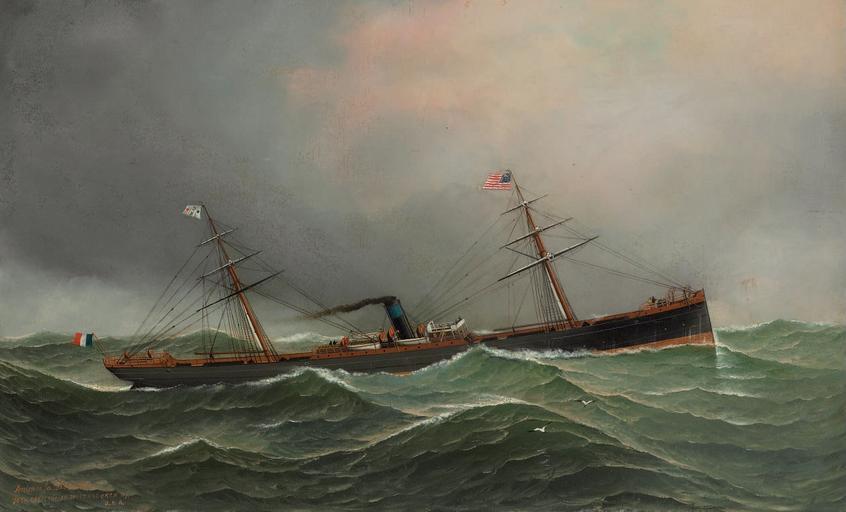 | Keywords: Antonio Nicolo Gasparo Jacobsen - French steamsailor Cachemire.jpg 1886 oil canvas in 22 36 object history credit line signed and dated 'Antonio Jacobsen 1886 /705 Palisade Av West Hoboken NJ /U S A ' lower left accession number Christie's online 5352889 PD-old-auto 1921 Antonio Jacobsen 1886 paintings Paintings of ships |