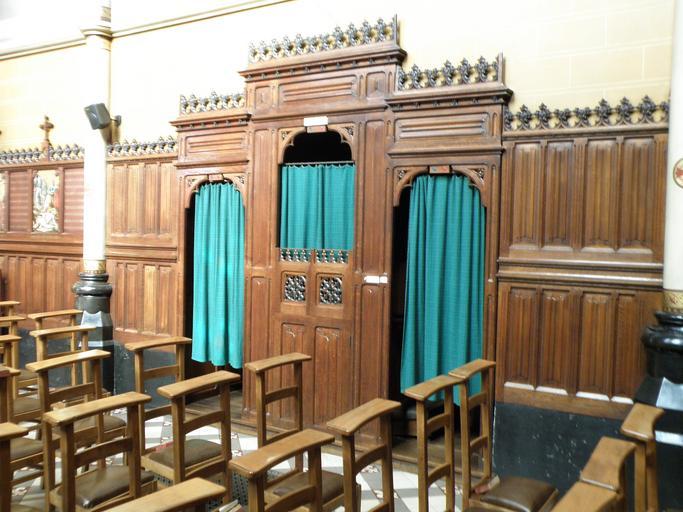 Keywords: Antwerpen Allerheiligste Sacrament8.JPG Ernest Stordiau Chapelle confessionnal nl Neogotische Kapel van het Allerheiligste Sacrament en voormalig klooster van de Zusters van de Gedurige Aanbidding gelegen Hemelstraat 21-23 in Antwerpen Gebouwd 1890-92 n o v Ernest Stordiau <br/> Kapel binnenaanzicht met biechtstoel <br/> Vgl verder http //inventaris vioe be/dibe/relict/6872 Inventaris Bouwkundig Erfgoed self-photographed Torsade de Pointes 2009-07 Kapel van het Allerheiligste Sacrament Antwerpen |
