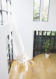 Keywords: room interior home wood floor design modern flat roof high window level hard sofa building solid arch table deck coffee property contemporary rail living historic conversion massive furniture stair architecture hous