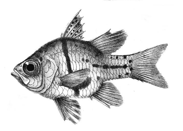 | Keywords: Apogon orbicularis Ford 17.jpg The species names / identity need verification The original plates showed the fishes facing right and have have been flipped here Apogon orbicularis https //archive org/stream/fishesofindiabei02dayf page/n5/mode/2up Day Francis 1878 The Fishes of India Volume 2 1878 creator George Henry Ford PD-old-100 Fishes of India Day - derivate Sphaeramia orbicularis | ||||