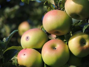 Keywords: apple apfelernte apple tree orchard windfall worm hole pest infestation