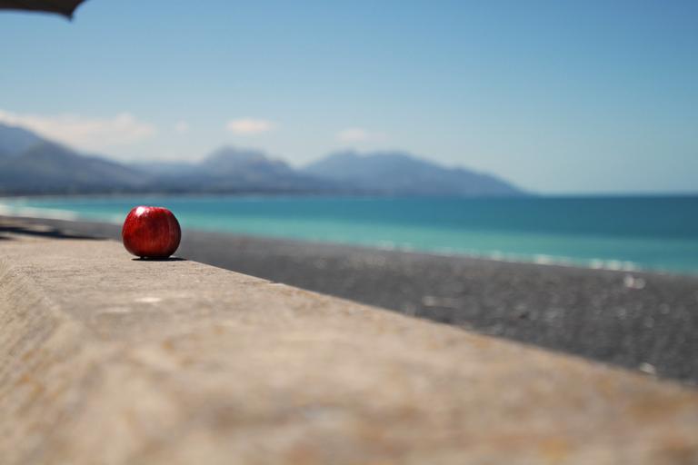 Keywords: apple beach landscape mountains sky sea ocean fruit outdoor sunny joyful colorful vintage