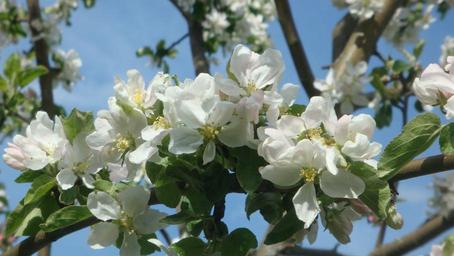 Keywords: apple bloom apple blossoms spring apple flower flowering tree blooming apple tree white color apple tree garden gardening