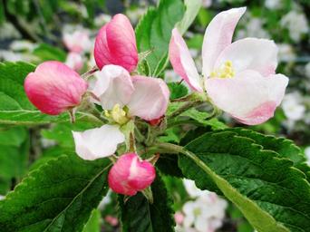 Keywords: apple blossom orchard pink white kernobstgewaechs branch spring