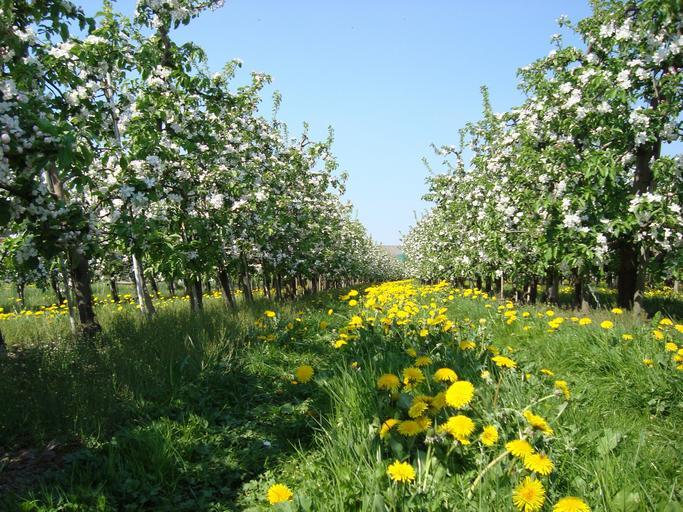 Keywords: apple blossom spring apple tree meadow