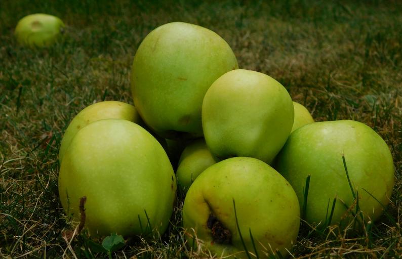 Keywords: apple fruit fruits obsthaufen obstfall autumn healthy harvest nutrition vitamins sour green apple group exclusion loneliness pome fruit
