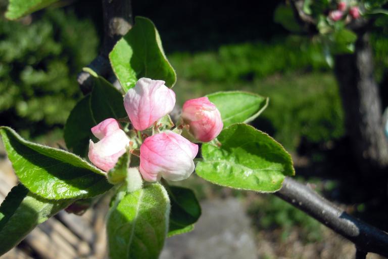 Keywords: apple tree apple blossom blossom bloom white pink branch leaves apple tree flowers apple tree blossom spring nature