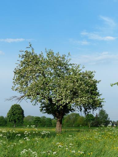 Keywords: apple tree tree apple blossom nature spring landscape meadow agriculture orchard fruit tree