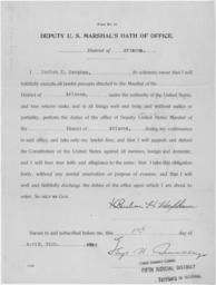 | Keywords: Appointment and Oath of Office for Rueben H. Harpham as Deputy Marshal in the Territory of Arizona. - NARA - 295738.tif Scope and content General notes 295738 Local identifier NARA's Pacific Region Riverside NRHAR 23123 Cajalco Rd Perris CA 92570 1910-04-01 Record group Record Group 527 Records of the U S Marshals Service 1864 - 1992 Record group ARC 764 Appointments and Oaths of U S Marshals and Deputy Marshals compiled 1864 - 1912 Series ARC 295651 File unit File unit ARC Variant control numbers NAIL Control Number NRHL-527-AZ1-87 yes Other versions NARA-cooperation PD-USGov Check categories-NARA 2011 September 13 Documents in English |