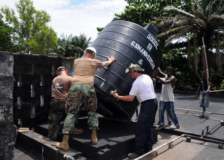 MAKE A MEME View Large Image Helps Local Sierra Leone Hospitals DVIDS213517.jpg en Africa Partnership Station construction personnel embarked aboard the Africa Partnership Station platform HNLMS Johan de Witt remount a water tower after completing a roofing project at ...